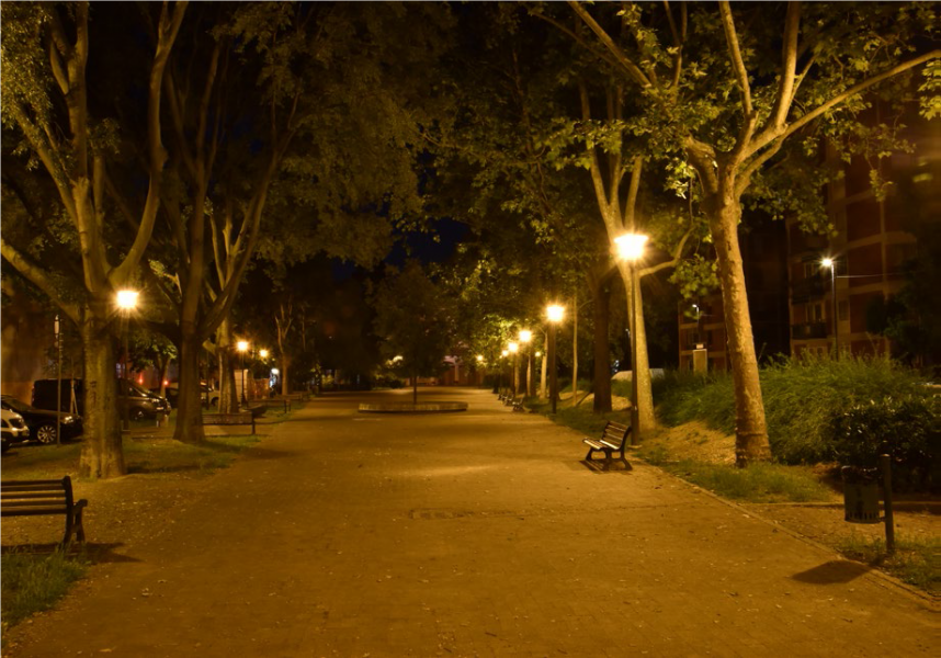 Projectors will be installed on the pillars of the arcade. The path lighting will therefore be indirect, to guarantee very high levels of uniformity on the ground and avoid glare effects which can be very disturbing in the evening hours for the elderly population. This solution will completely replace the existing system.