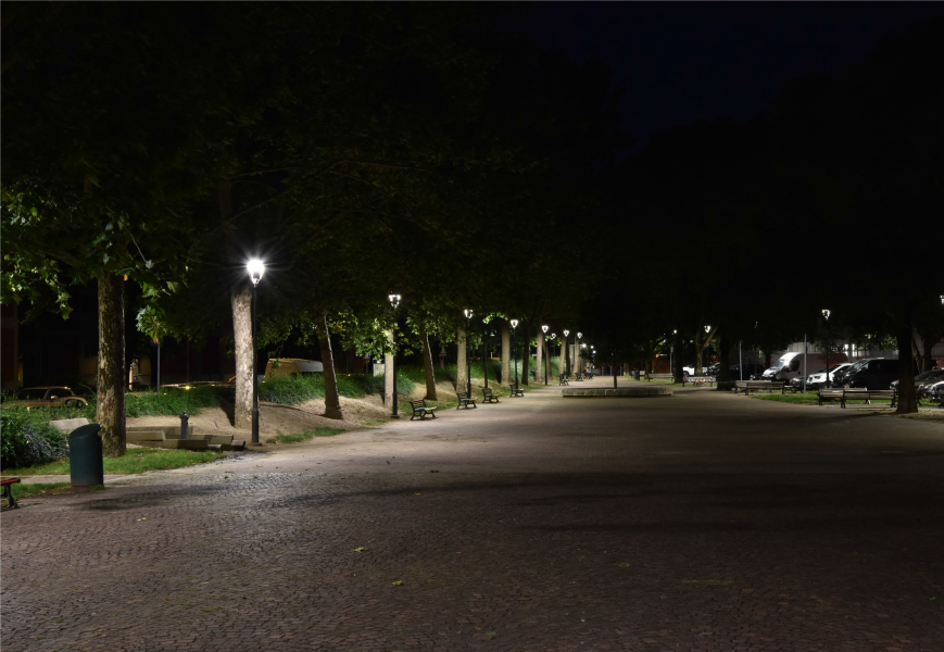 For the experimentation phase, half of the fixtures are equipped with CRI 80 and the other half CRI 90. This distinction will help the study to evaluate whether the difference in colour rendering is perceptible by users, especially the elderly. During the year of testing, people’s habits will be analysed and the most crowded areas of the square will be studied. Furthermore, the system will be divided into separate control groups to switch off some luminaires and evaluate the impact on users.